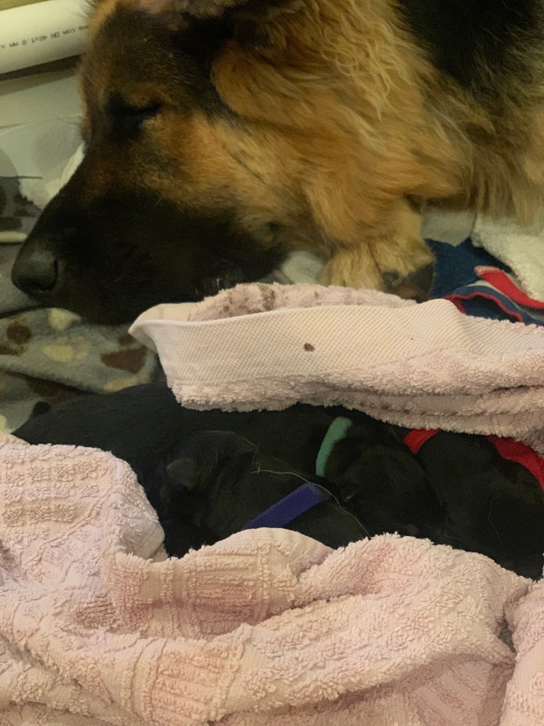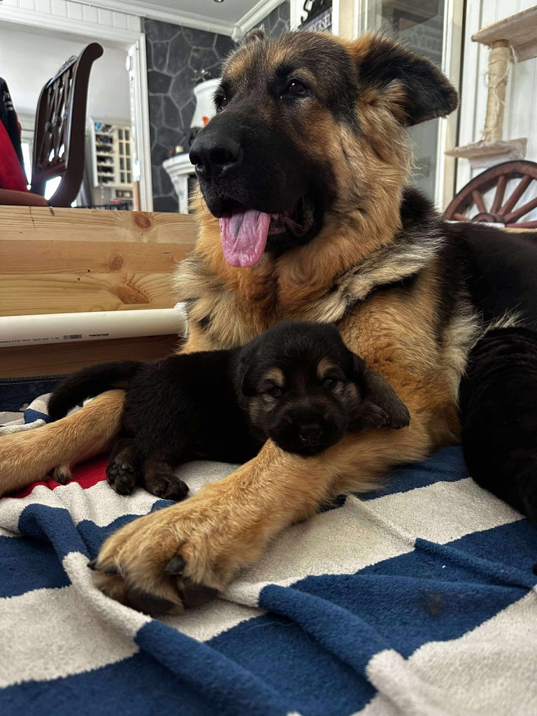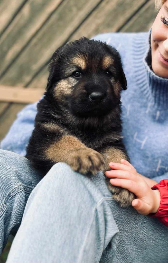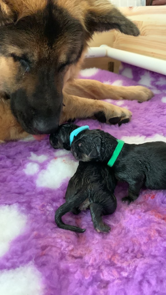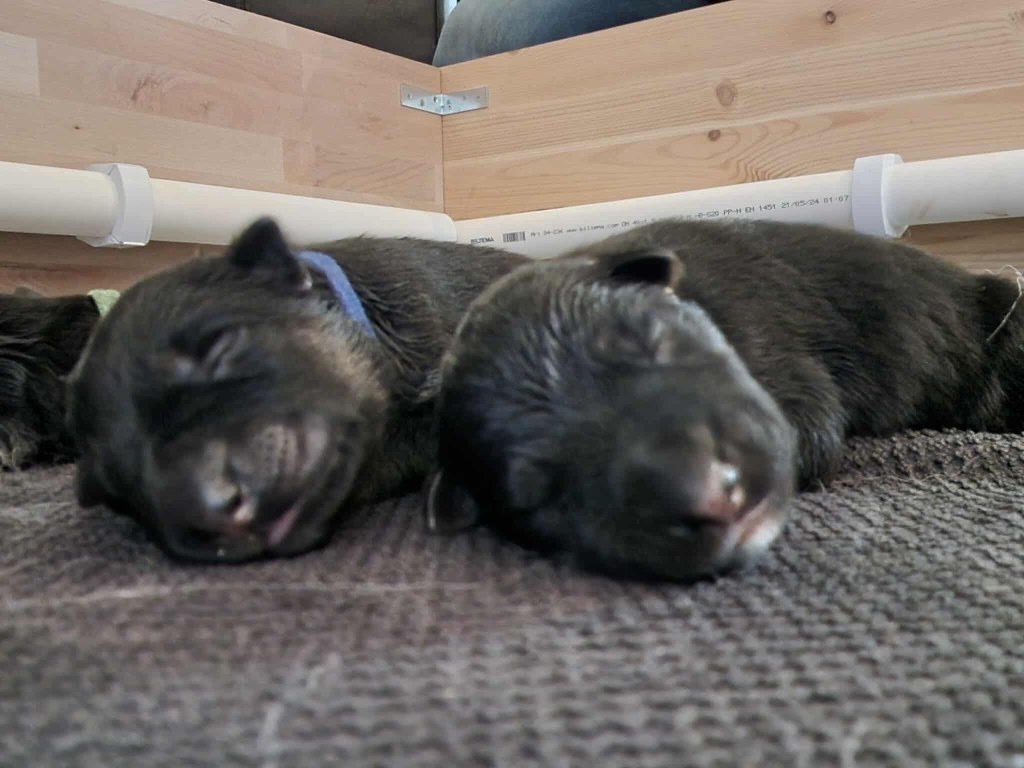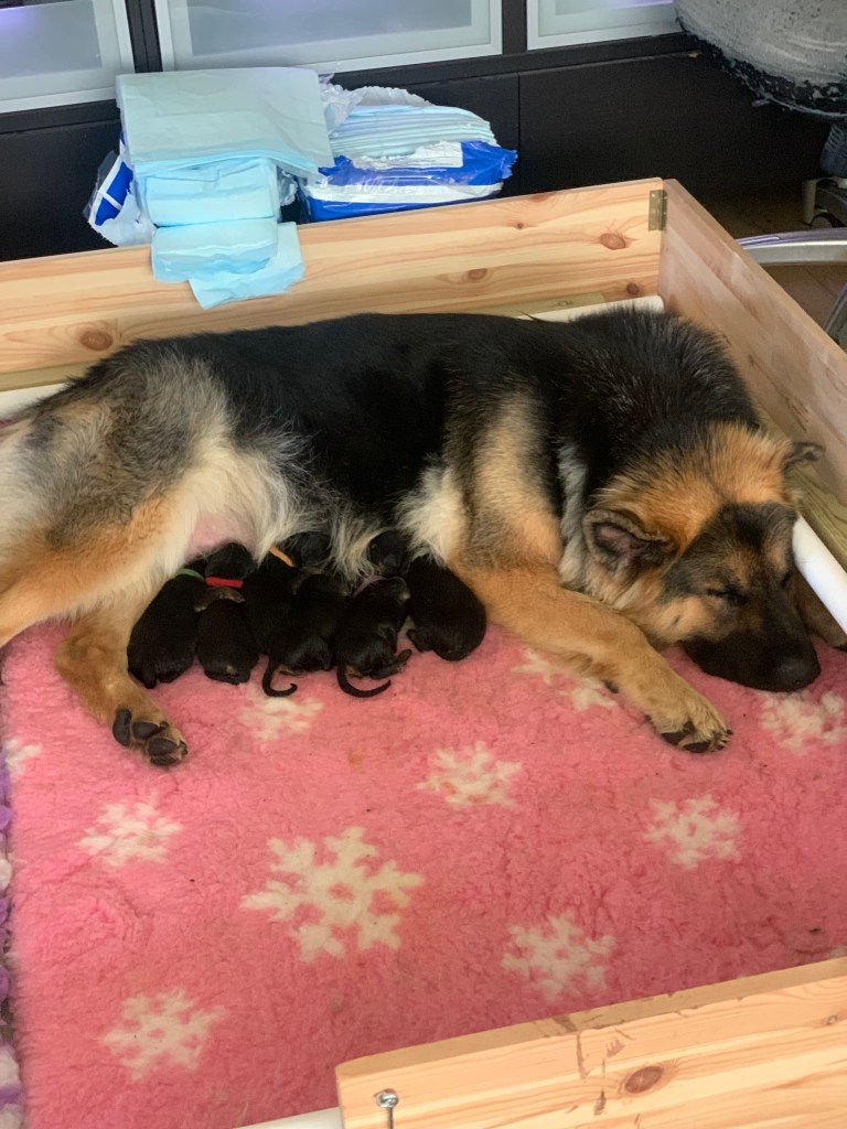 Geri kom seint med løpetid i juni 2025. Det ble en match med Boone, og hun fødte sitt første kull 17-18. august, 4 gutter og 2 jenter, 6 totalt. 😍