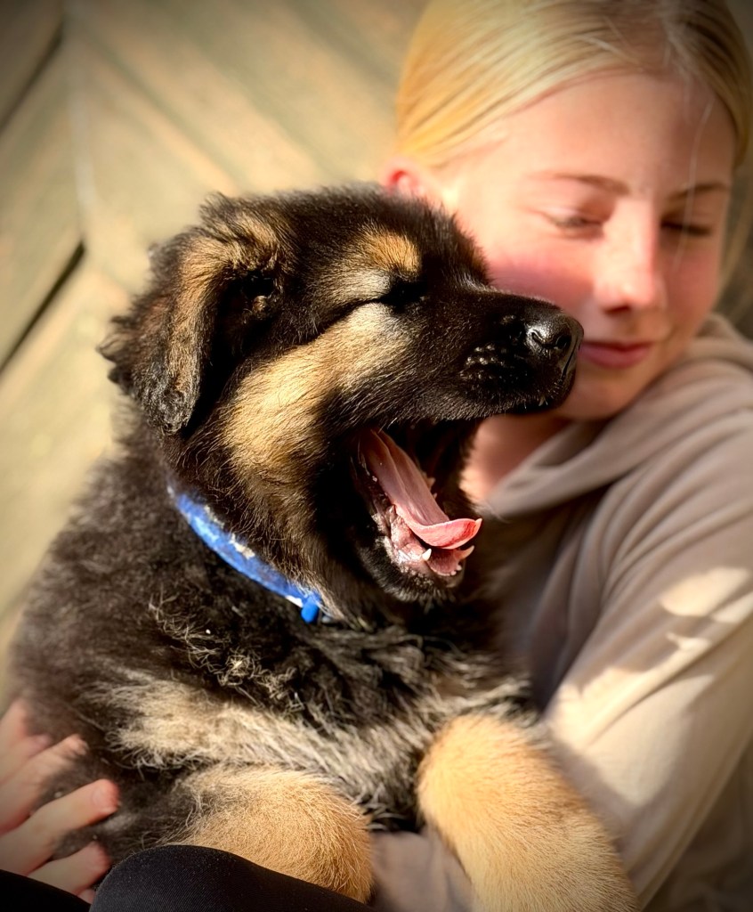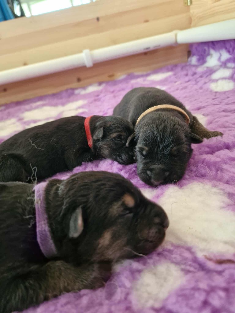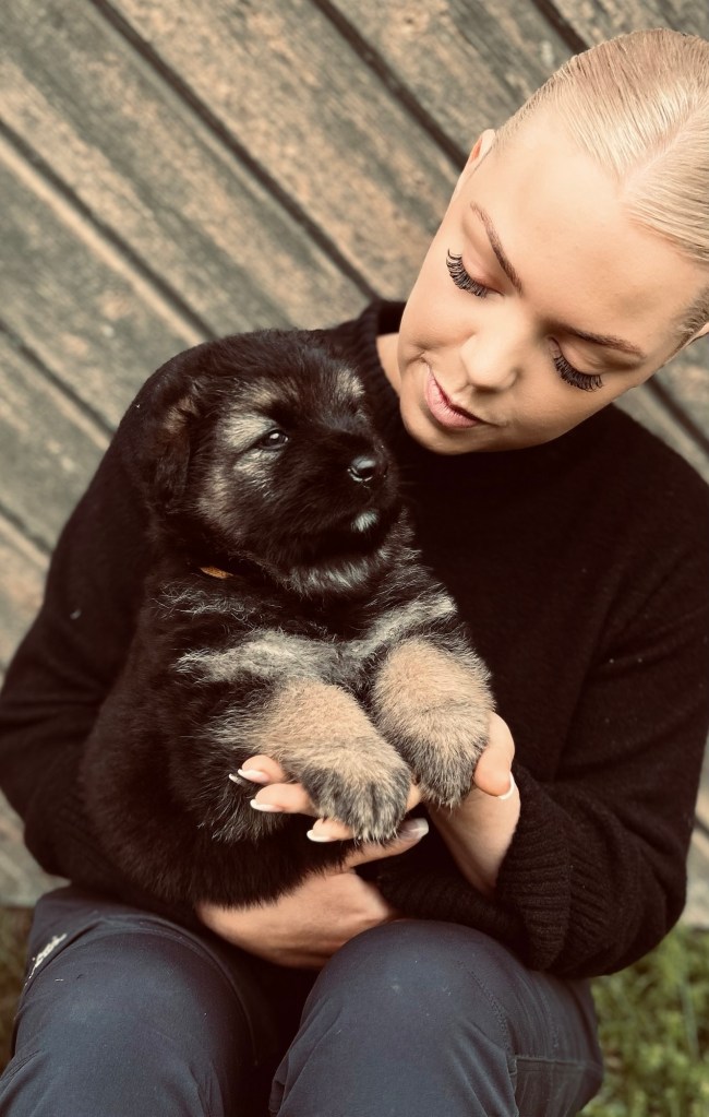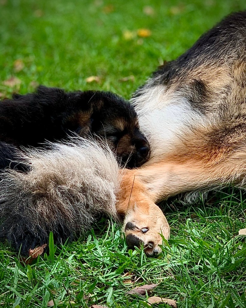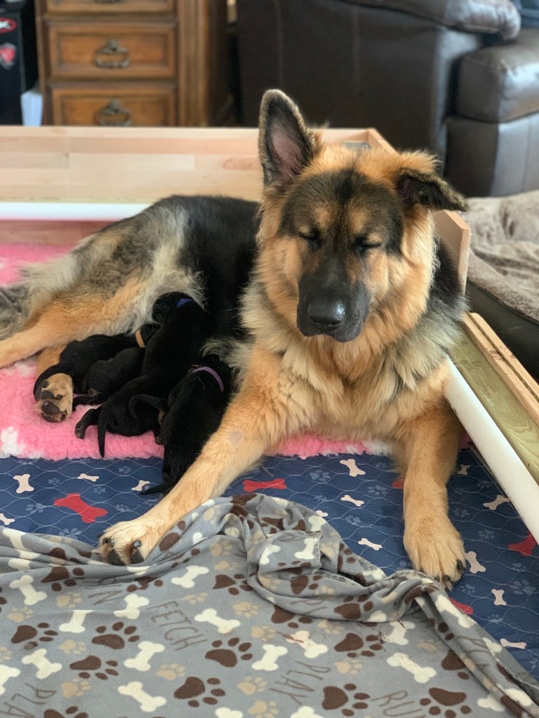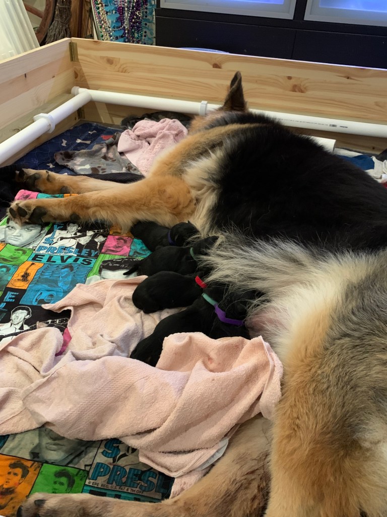 Geri kom seint med løpetid i juni 2025. Det ble en match med Boone, og hun fødte sitt første kull 17-18. august, 4 gutter og 2 jenter, 6 totalt. 😍