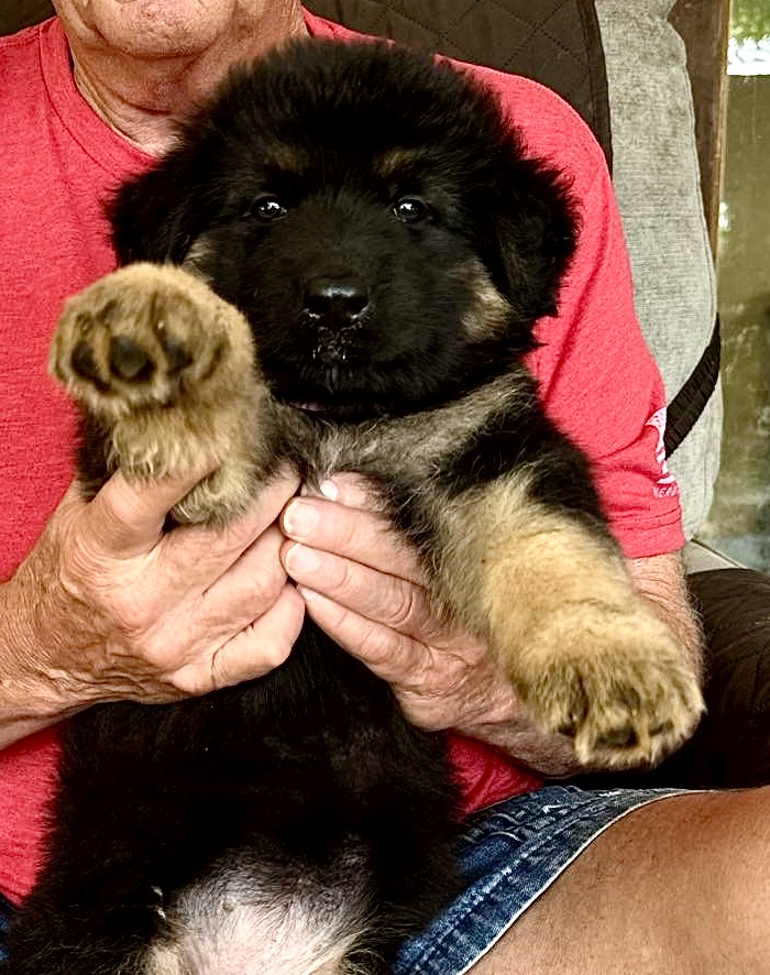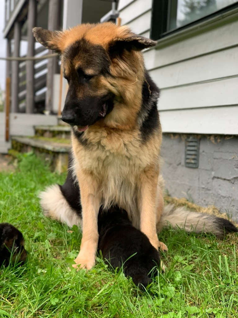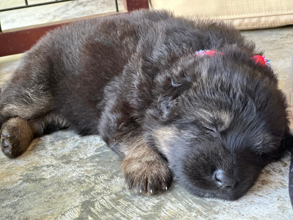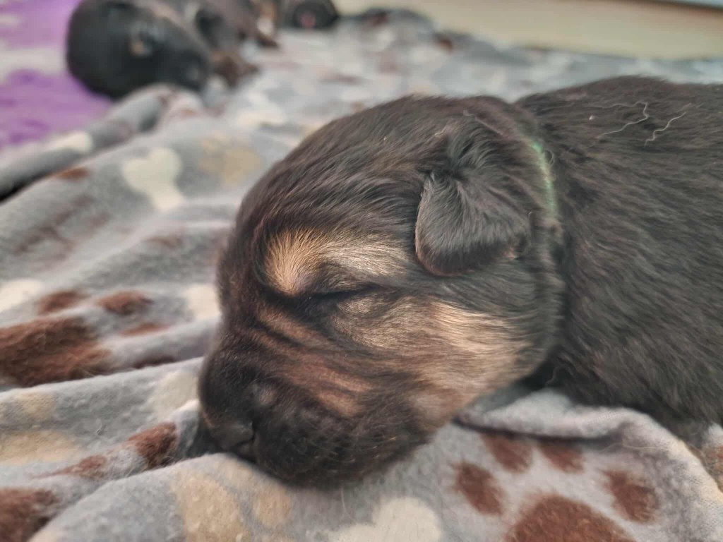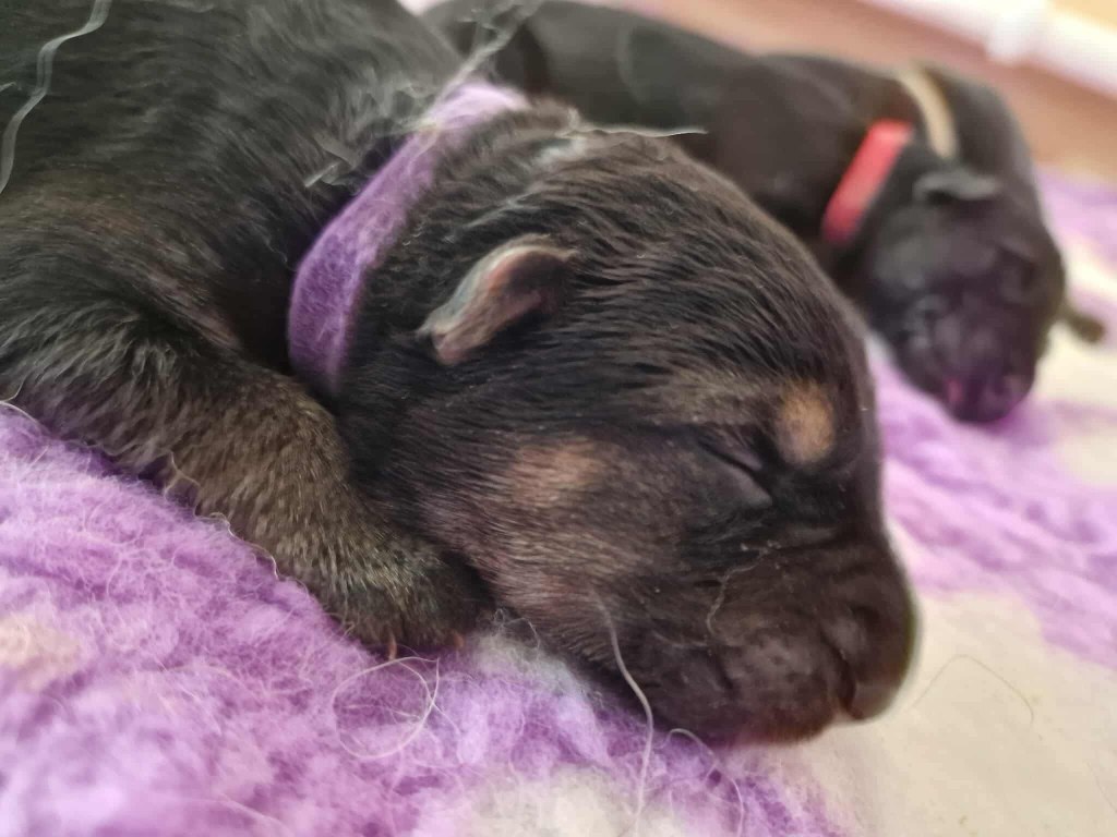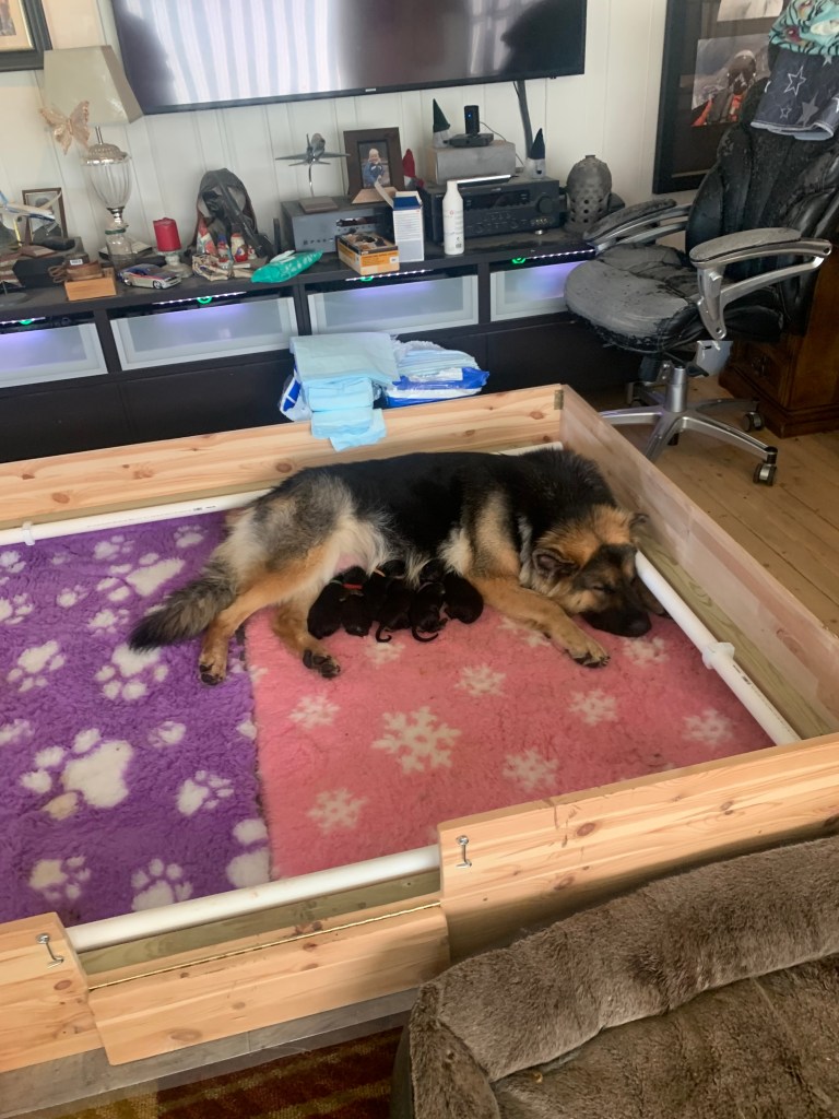 Geri kom seint med løpetid i juni 2025. Det ble en match med Boone, og hun fødte sitt første kull 17-18. august, 4 gutter og 2 jenter, 6 totalt. 😍