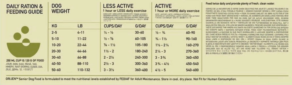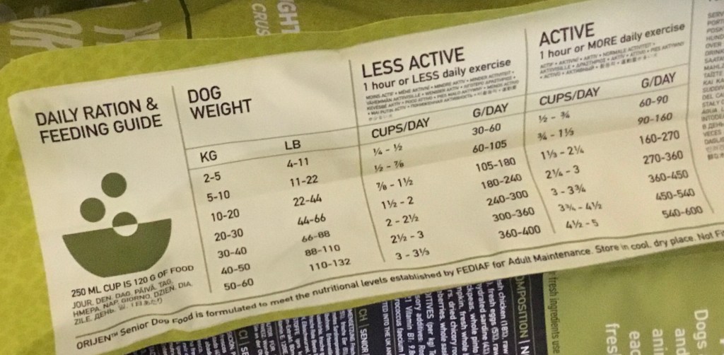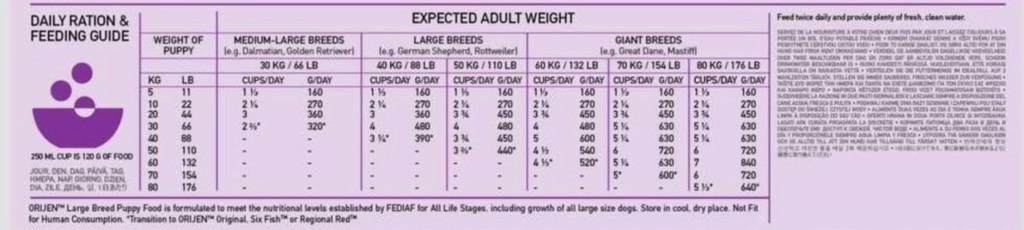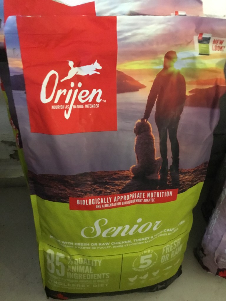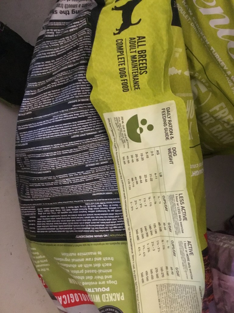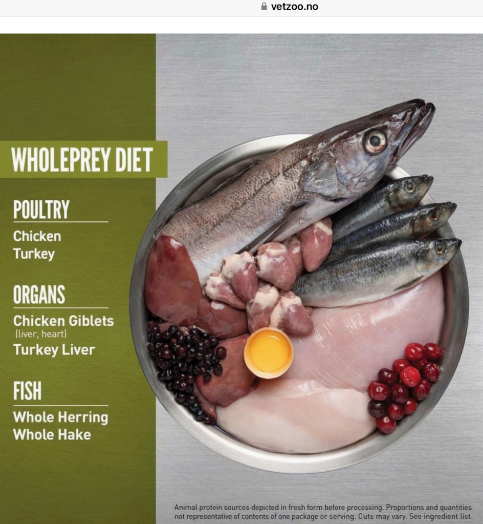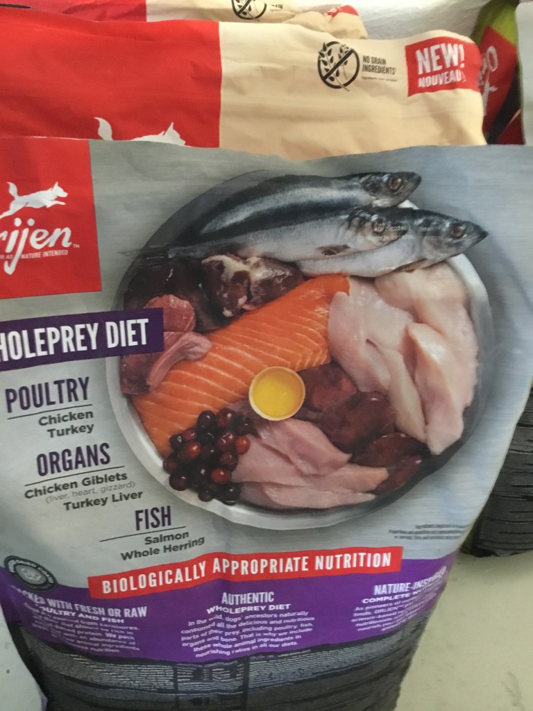 Tørrfôret nedenfor er fra Orijen, kvalitetsfor uten korntilsetning. Dyr, men utrolig næringsrik, slik at man må nesten se hvordan hunden responderer med vekt i forhold til aktivitets- nivå og mengde fôr, totalt sett. Hunden er fasit, så justerer man etterhvert.