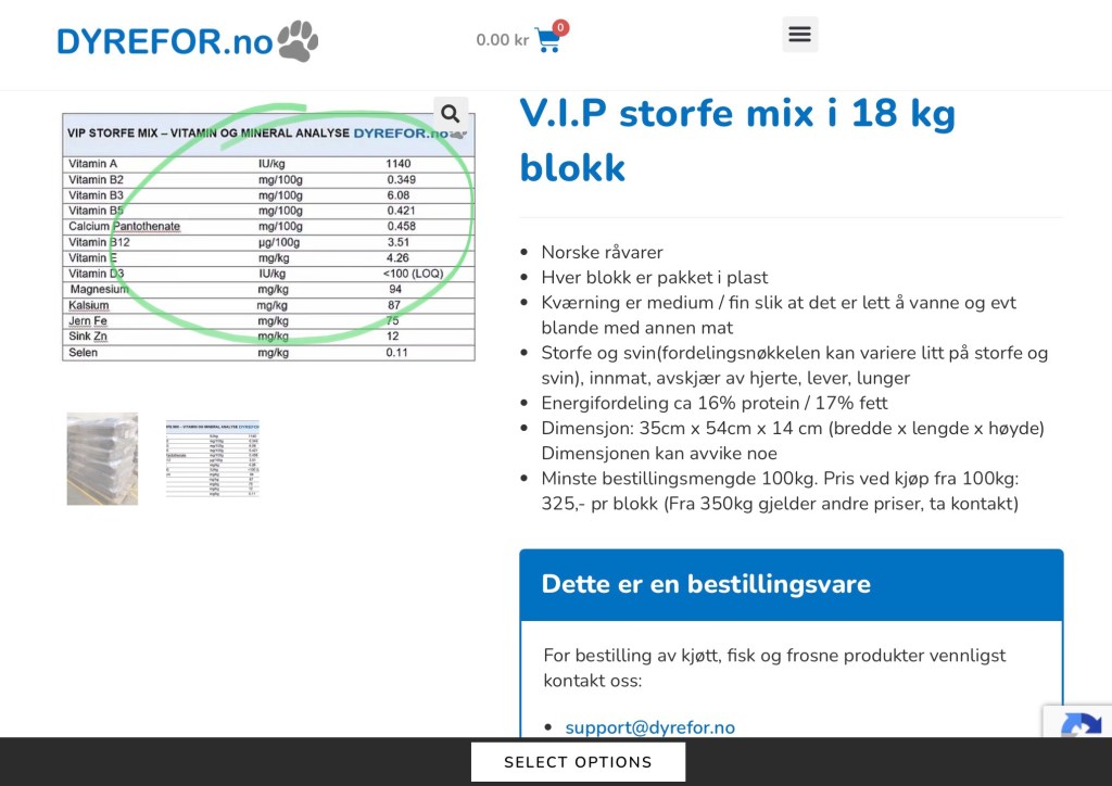 Bilder fra Rawfôr.no nedenfor. De har endel veldig bra produkter, som hamburgere og blokker. Vi har brukt dette. Anbefaler å kikke på innholdsfortegnelsen på de spesifikke produkter, slik at man opprettholder variasjon, og ikke får for mye av enkelte tilsetningsstoffer.